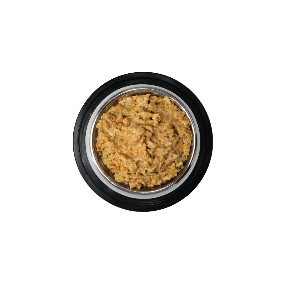 Pollo 15 %, hígado de pollo 10 %, salmón 5 %, zanahorias 4 %, aceite de linaza 0,5 %, arroz y minerales