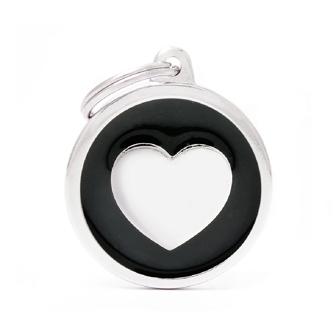 Placa Classic grande en forma de círculo negro y un corazón blanco