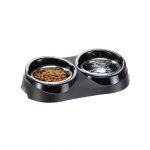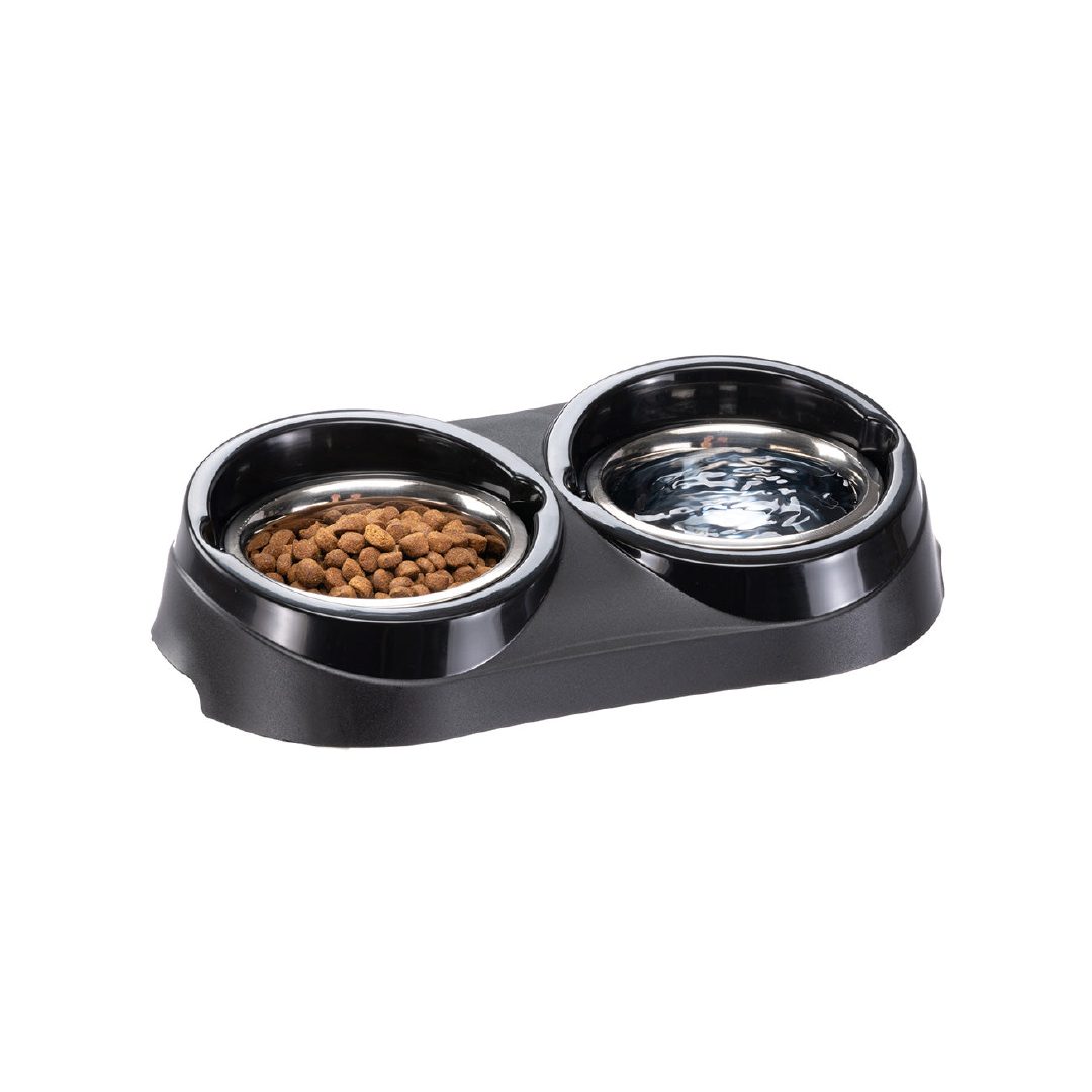 FERPLAST DUO FEED 03 / DOS PLATOS DE ACERO INOXIDABLE CON SOPORTE