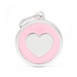 Placa Classic grande en forma de círculo rosado y una corazón blanco